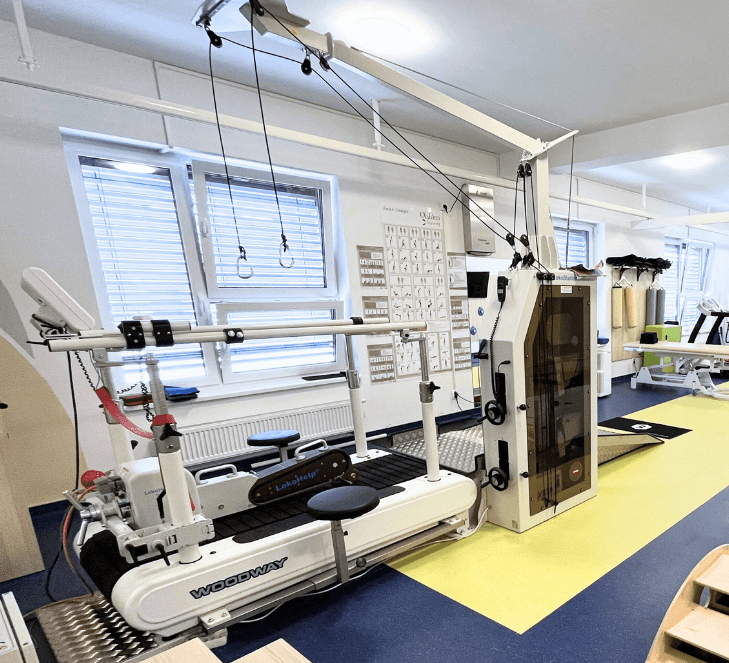 Moderný robotický systém na tréning chôdze, ktorý umožňuje bezpečný, presný a opakovateľný nácvik správneho pohybového vzoru.